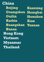 Beijing Guangzhou Guilin Harbin Huangshan Hunan Kunming Shanghai Shenzhen Xian Yunnan Hong Kong List Vietnam Myanmar Thailand